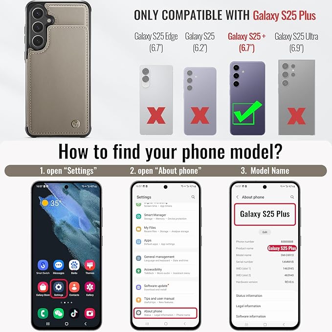 - for Samsung S25 Plus Case with Card Holder: The for Galaxy S25 Plus case is designed with card slots for drivers license, insurance cards, door access card, debit cards, etc; The case is easy to hold and remove, so you don’t need to take bulky purse to outdoor; This case for S25 Plus is suitable for all ages of women & men