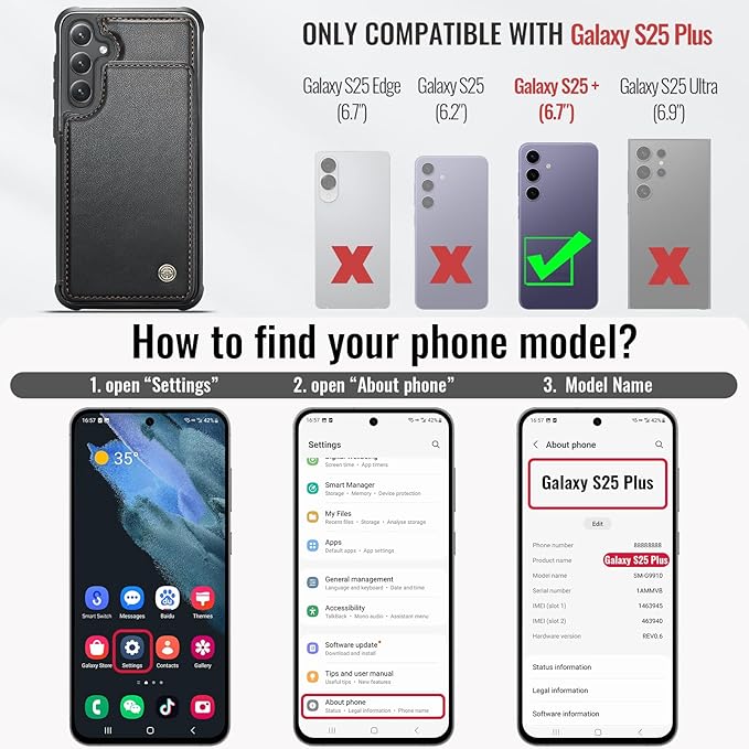 - for Samsung S25 Plus Case with Card Holder: The for Galaxy S25 Plus case is designed with card slots for drivers license, insurance cards, door access card, debit cards, etc; The case is easy to hold and remove, so you don’t need to take bulky purse to outdoor; This case for S25 Plus is suitable for all ages of women & men