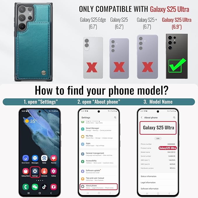 - for Samsung S25 Ultra Case with Card Holder: The for Galaxy S25 Ultra case is designed with card slots for drivers license, insurance cards, door access card, debit cards, etc; The case is easy to hold and remove, so you don’t need to take bulky purse to outdoor; This case for S25 Ultra is suitable for all ages of women & men
