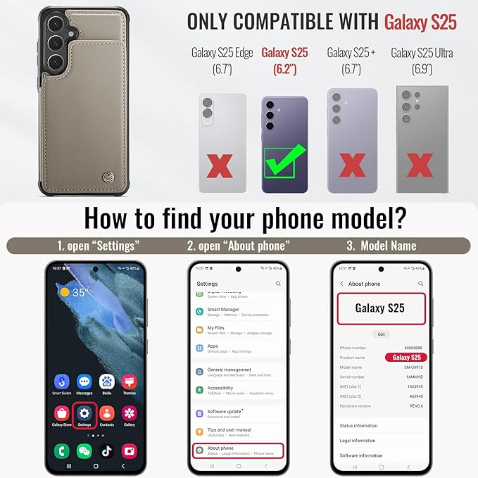 - for Samsung S25 Case with Card Holder: The for Galaxy S25 case is designed with card slots for drivers license, insurance cards, door access card, debit cards, etc; The case is easy to hold and remove, so you don’t need to take bulky purse to outdoor; This case for S25 is suitable for all ages of women & men