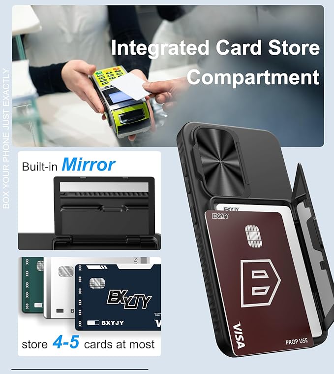 - ✅【Protect What's Important! Protective Camera Cover】Innovative design with a metal camera protector and 2mm raised lips around the camera, the BXYJY Samsung Galaxy S25 case with card holder provides full protection for the back lens to avoid scratches and drops. No more worries about damaging the camera lens, and protect your privacy