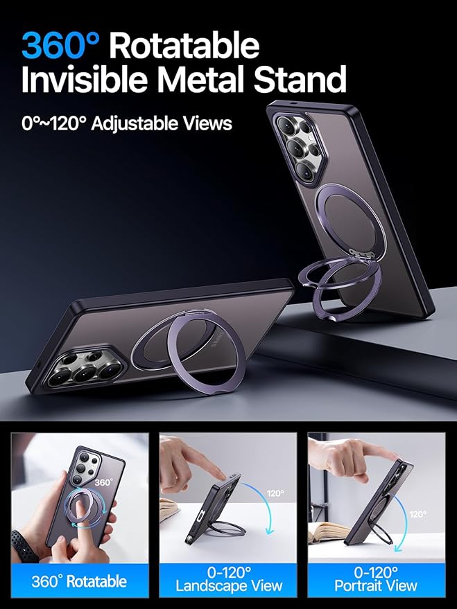 - Enjoy a flexible viewing experience with the built-in metal ring. It rotates freely in all directions, serving as both a sturdy stand for hands-free use and a secure grip for daily carrying.