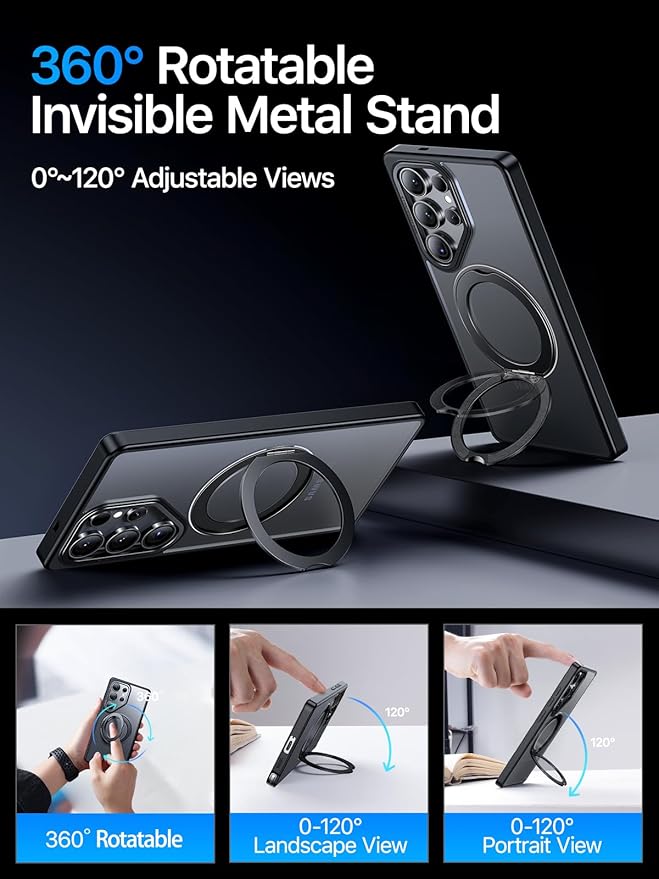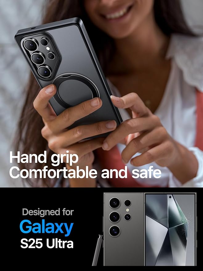 QTlier Phone case for Galaxy S24 Ultra& S25 Ultra- 360 Rotatable Magnetic Ring Stand, Military-Grade Protection, Raised Camera Frame (Black, S25 Ultra)