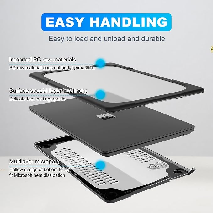 - Case specificity model:Case Only fit for Microsoft Surface Laptop Copilot+ PC 13.8-inch Touchscreen (7th Edition) 2024 release,Model number:2036.Note: different models correspond to different case,not compatible with 13.5" and 15" Microfoft surface laptop