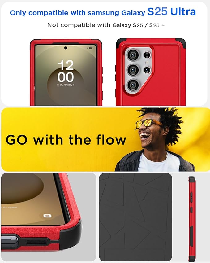 - Compatible with Samsung Galaxy S25 Ultra CASE: Premium materials provide great texture while maintaining shockproof functionality,Multi-layered TPU and Polycarbonate materials create ultimate drop protection.Ultra thin and slim design without adding any bulk or weight to the sleek Samsung Galaxy S25 Ultra.Easy to slip in and out of bags & pockets.