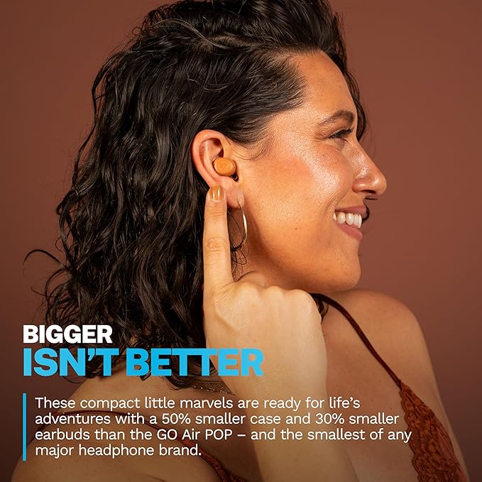- 🤏 BIGGER ISN’T BETTER / PLENTY OF PLAYTIME: These compact little marvels are ready for life’s adventures with a 50% smaller case and 30% smaller earbuds than the GO Air POP – and the smallest of any major headphone brand. Enjoy 5.5 hours of playtime in each earbud or 20 total hours with the charging case for an all-day listening experience where size doesn't compromise performance.