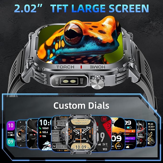 - [2.02" Large Screen & Long Battery Life]: HeraQuen men's military smartwatch features a large 2.02-inch ultra-high resolution screen with a resolution of up to 320 * 390, which can enhance the user's visual experience and smooth operation, bringing you a special visual experience. Rugged smart watches have a large built-in 400mAh battery with up to 10 days of battery life, which can provide you with continuous energy for long outdoor sports or adventures and reduce frequent charging.