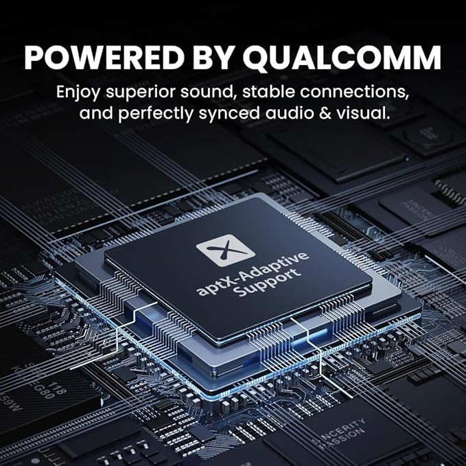 - 【No Audio Delay】The Qualcomm QCC chip and aptX Adaptive keep audio perfectly in sync with the screen — no lip sync issues or delay.