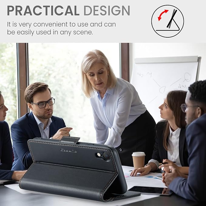 - [Multifunctional] This iPhone XR Flip Wallet Leather Case with Adjustable Stand frees up your hands by allowing you to watch videos or movies at the best angle.Whether you're studying,working,exercise or entertainments, this wallet case will meet your needs.