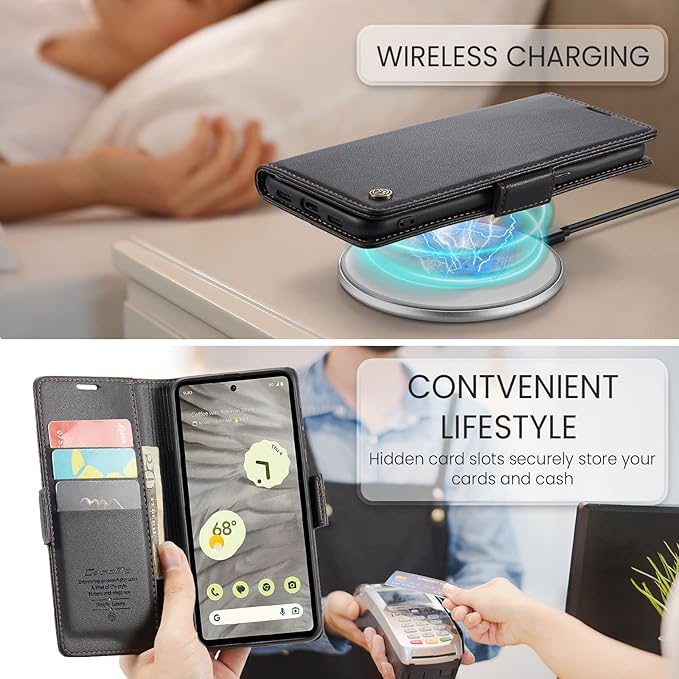 - [Multifunctional] This Google Pixel 7A Flip Wallet Leather Case with Adjustable Stand frees up your hands by allowing you to watch videos or movies at the best angle.Whether you're studying,working,exercise or entertainments, this wallet case will meet your needs.