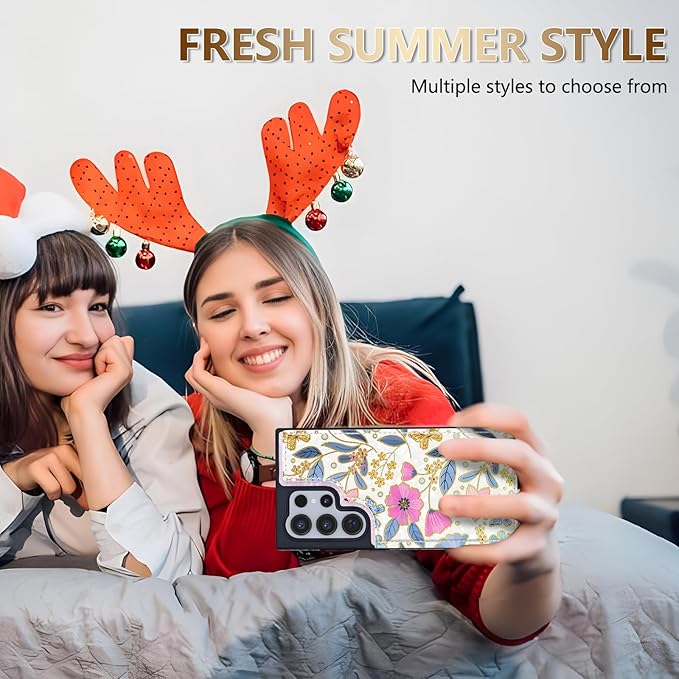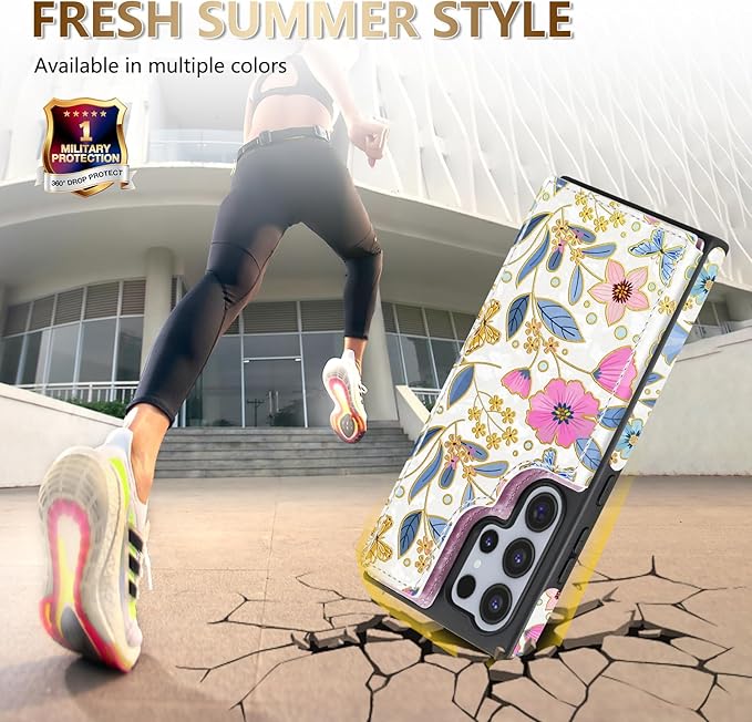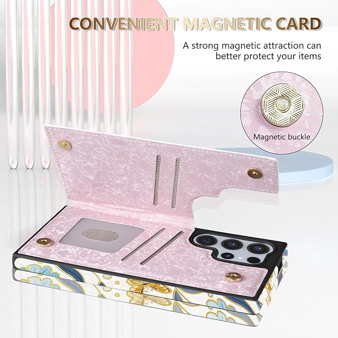 NNH Compatible with Samsung Galaxy S25 Ultra Wallet Case with RFID Blocking Card Slots Flip PU Leather Kickstand Double Magnetic Clasp Design Cover for Galaxy S25 Ultra(6.8 inch-Butterfly Flowers)