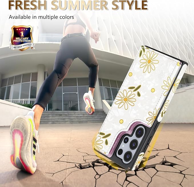 NNH Compatible with Samsung Galaxy S25 Ultra Wallet Case with RFID Blocking Card Slots Flip PU Leather Kickstand Double Magnetic Clasp Design Cover for Galaxy S25 Ultra(6.8 inch-White Little Daisy)