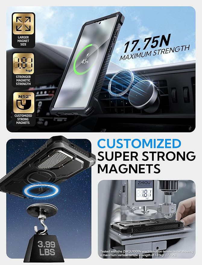 - [Strong Magnetic Absorption] Built-in N52 magnet delivers a magnetic force of up to 1800g, ensuring seamless compatibility with a diverse range of MagSafe accessories (magnetic car mount, MagSafe wireless charger, desktop magnetic wireless charging stand)