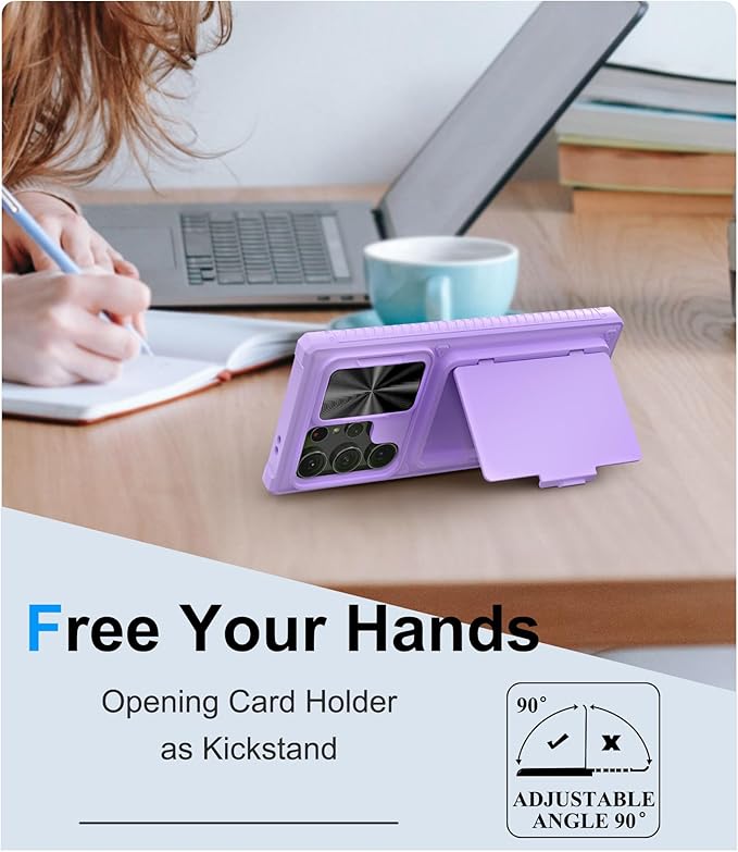 - ✅【Hidden Kickstand to Free Your Hands】The opened card holder cover can be used as a kickstand. Free your hands while watching the video. As the cardholder is opening, please keep them in other safe places if the cards or cash are in our Samsung Ultra S23 case.