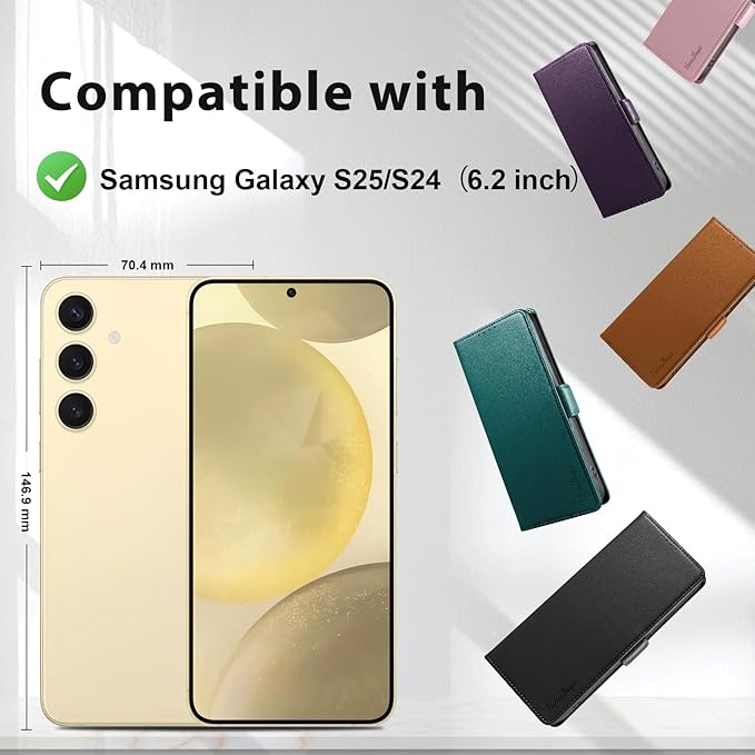 - 【Compatible with Samsung Galaxy S25 5G】:This Leather wallet case fits perfectly on the corresponding phone's sensors, buttons and camera. Sensitive keys, smooth fingerprint unlock, clear earpiece. Please make sure your phone is Samsung Galaxy S25 5G before purchase.
