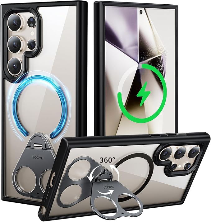 - 【All in One: Magnetic, Stand, Ring Holder】for Samsung S24 ultra case, a groundbreaking case that integrates magnets, a 360°spin kickstand also as a ring holder, Comprehensive protection, and it holds my phone upright or sideways for Facetime, video chat. As a phone ring holder grip, I can hold the ring with Two finger to grip the phone securely when I get my hands full!It shortens overall charging time and further improves your wireless charging experience