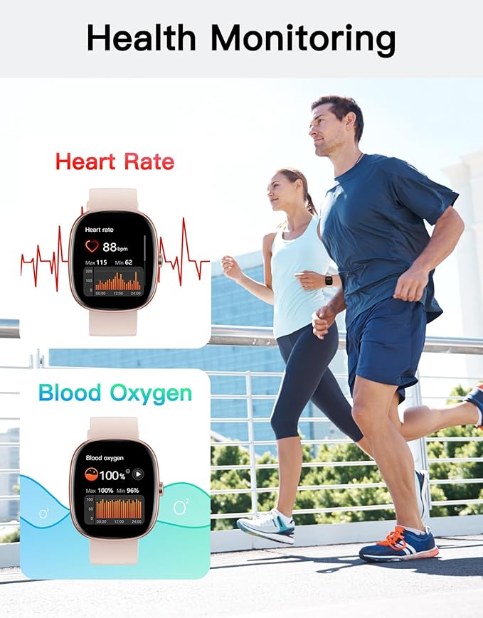 - Heart Rate & Blood Oxygen & Sleep Monitoring: This health watch can track your heart rate & Blood Oxygen level in real-time and analyzes sleep patterns to help you improve overall wellness.
