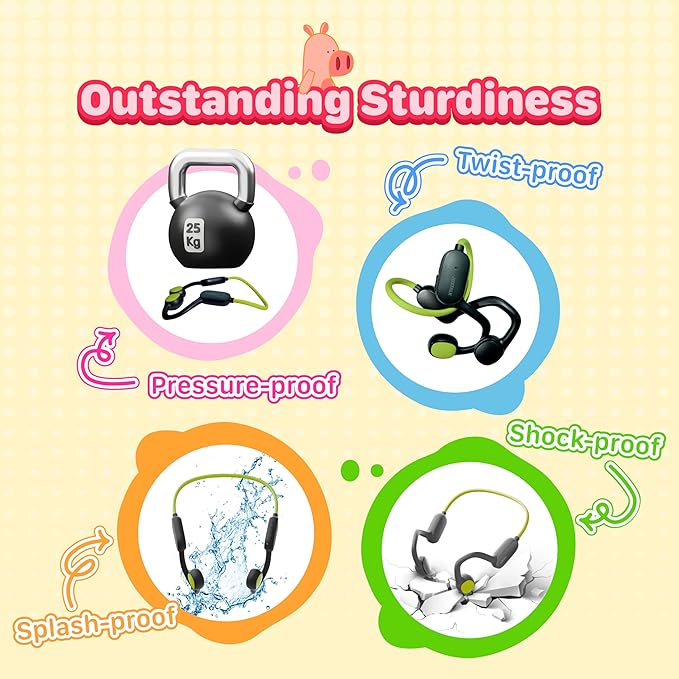 - 【Outstanding Sturdiness】Made of memory titanium, the kids wireless headphones can restore their shape after being curled over 360 degrees and won't deform under heavy pressure. With an IPX5 rating, kids' headphones can handle daily rain and sweat. Also withstand drops from high places