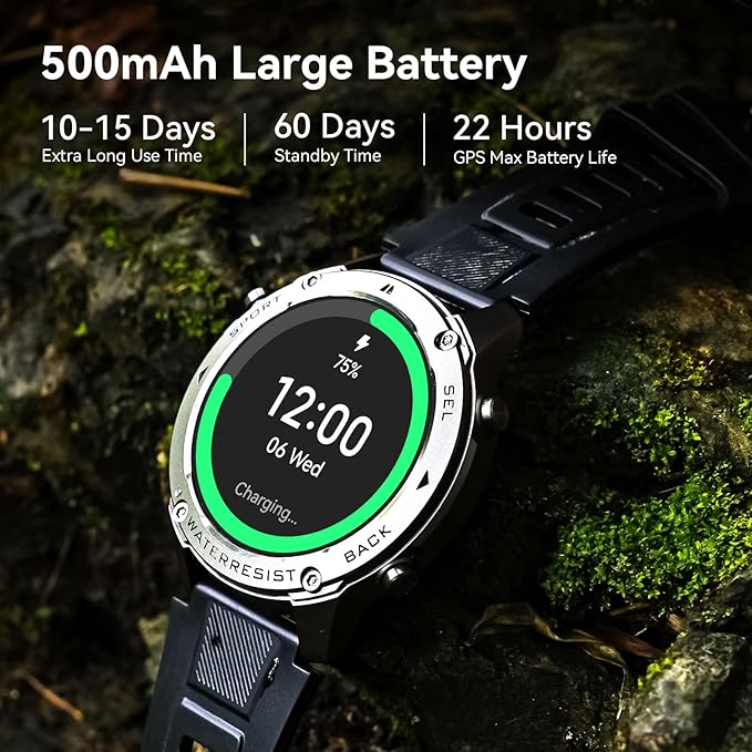 - Special Feature : GPS with 6 Satellite Positioning, 1.43'' AMOLED Always On Display, 164 Feet Water-Resistant for Swimming, 500mAh Big Battery, Compass, Military Grade Standard with Full Metal Body, Bluetooth Dial & Answer Calls, AI Voice Control, Heart Rate Monitor, Sleep Tracker, 170+ Sports Modes, Long Time Standby, Weather Forecast, Music Control, Sedentary Reminder, Remote Camera Alarm Clock, etc. GPS with 6 Satellite Positioning, 1.43'' AMOLED Always On Display, 164 Feet Water-Resistant for Swimming, 500mAh Big Battery, Compass, Military Grade Standard with Full Metal Body, Bluetooth Dial & Answer Calls, AI V… See more