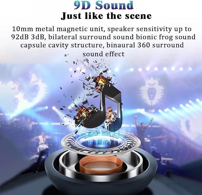 - ♫ 9D sound like the scene: 10mm metal strong magnetic unit, speaker sensitivity up to 92dB Shi 3dB, drums and vocals easier to dive, bilateral surround bionic frog sound capsule cavity structure, with binaural 360 ° surround sound effects