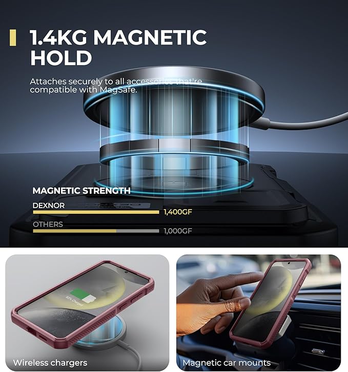 - Secure magnetic attachment: With a magnetic hold of up to 1,400g, this rugged case attaches seamlessly to all magnetic-compatible accessories. Whether it's a wireless charger or a magnetic car mount, it keeps your phone securely in place no matter the situation.