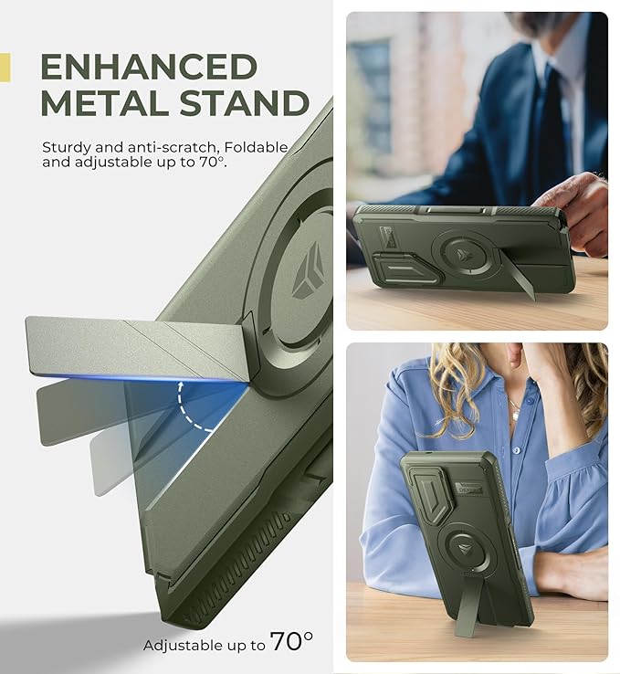- Adjustable metal kickstand: Made from superior aluminum alloy, the adjustable stand is incredibly sturdy and long-lasting. It holds your phone securely in both landscape and portrait modes, ensuring great stability and convenience for hands-free viewing.