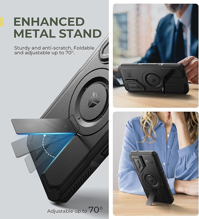 - Adjustable metal kickstand: Made from superior aluminum alloy, the adjustable stand is incredibly sturdy and long-lasting. It holds your phone securely in both landscape and portrait modes, ensuring great stability and convenience for hands-free viewing.