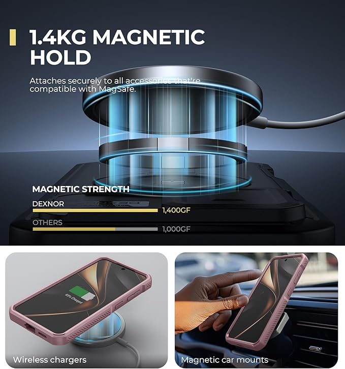 - Secure magnetic attachment: With a magnetic hold of up to 1,400g, this rugged case attaches seamlessly to all magnetic-compatible accessories. Whether it's a wireless charger or a magnetic car mount, it keeps your phone securely in place no matter the situation.