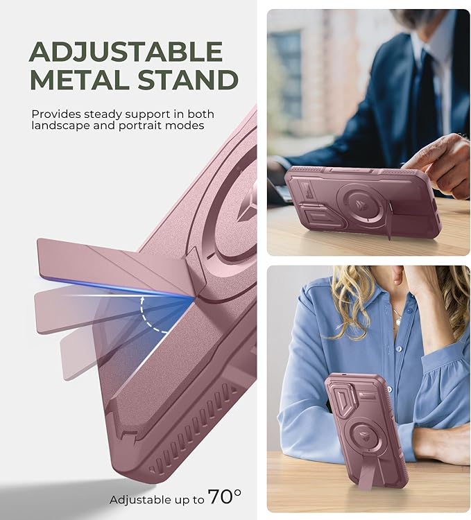 - Adjustable metal kickstand: Made from superior aluminum alloy, the adjustable stand is incredibly sturdy and long-lasting. It holds your phone securely in both landscape and portrait modes, ensuring great stability and convenience for hands-free viewing.