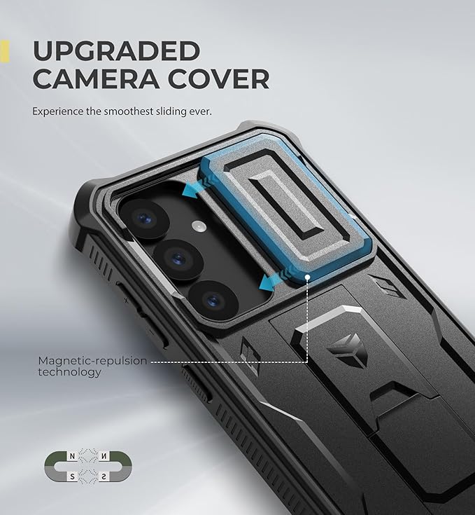 - Upgraded camera cover: The case's camera cover is upgraded with magnetic repulsion technology for smoother sliding; It not only protects your lens from scratches, dust, and impacts but also ensures it’s always ready for the perfect shot on the go.