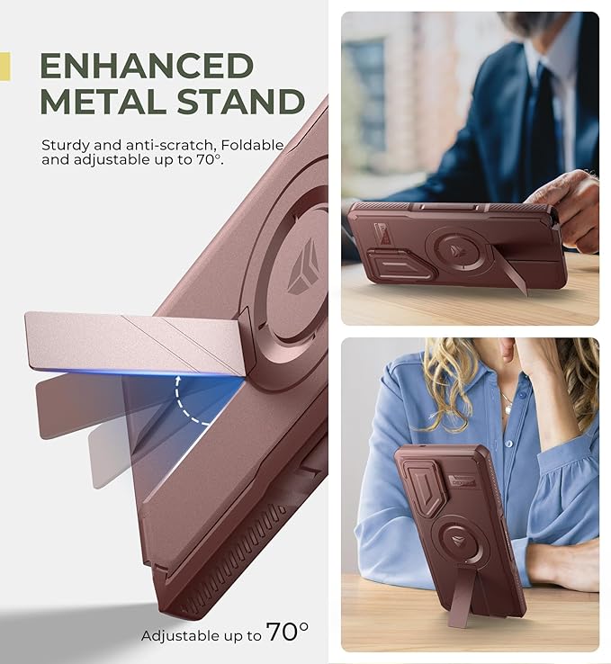 - Adjustable metal kickstand: Made from superior aluminum alloy, the adjustable stand is incredibly sturdy and long-lasting. It holds your phone securely in both landscape and portrait modes, ensuring great stability and convenience for hands-free viewing.
