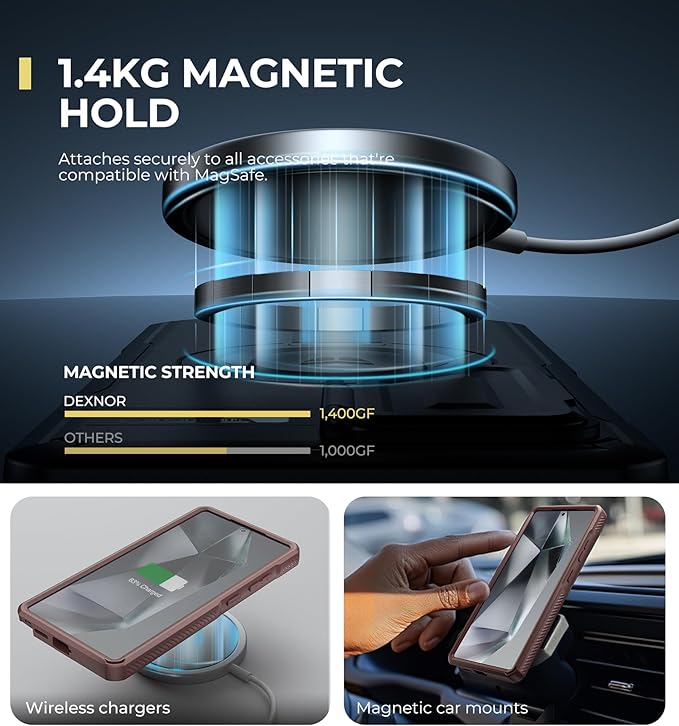 - Secure magnetic attachment: With a magnetic hold of up to 1,400g, this rugged case attaches seamlessly to all magnetic-compatible accessories. Whether it's a wireless charger or a magnetic car mount, it keeps your phone securely in place no matter the situation.