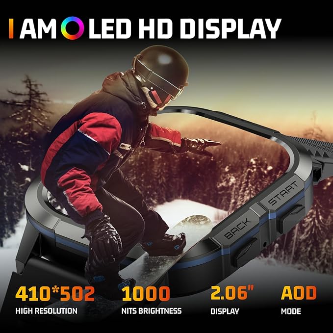- Rugged Military-Grade Smart Watch for Men: Military watches for men are made from durable metal. This smart watch for iphone compatible has passed rigorous military-grade tests, including extreme temperature, low pressure, and dustproof testing. The 2.06" AMOLED screen offers a smooth touch experience and excellent visuals. Choose from various watch faces or personalize it with your own photos