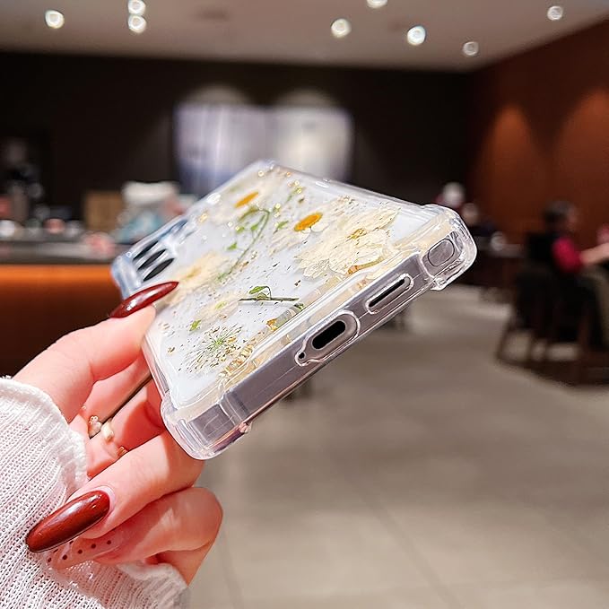Compatible with Samsung Galaxy S25 Ultra Case Cute Pressed Dried Real Flowers Design Women Girly Shockproof Glitter Floral Clear Phone Cover for Galaxy S25 Ultra (White Flower)