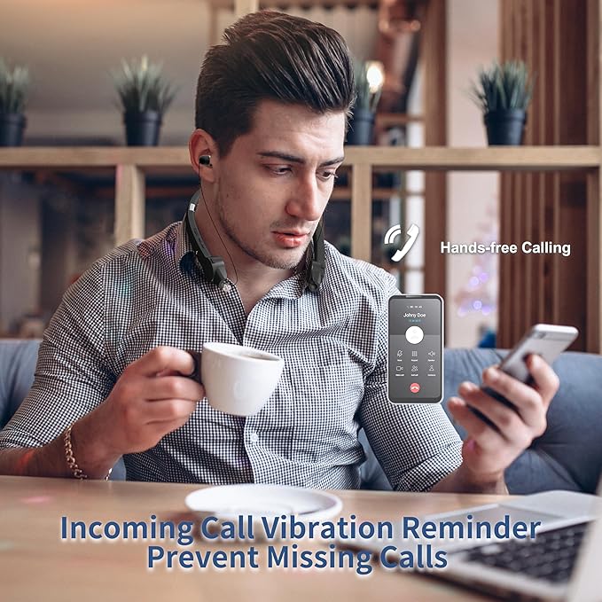 - [Comfortable Neckband Design with Vibration Reminder]: The ergonomic neckband design ensures a comfortable fit around your neck, enjoy music on the go. When a call comes in, the vibration reminder alerts you so you never miss a call even in noisy environments and the earplugs are not in your ears, really sets you hands free.