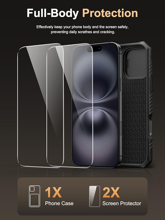 - 【Sliding Camera Lens Protection Cover】The newly designed sliding camera protective cover is 2mm thick and the sliding rail is sensitive. When you don't need to use the camera, just slide the cover for one second to cover the camera lens to Protect your iphone 16 plus phone lens from scratches and damage