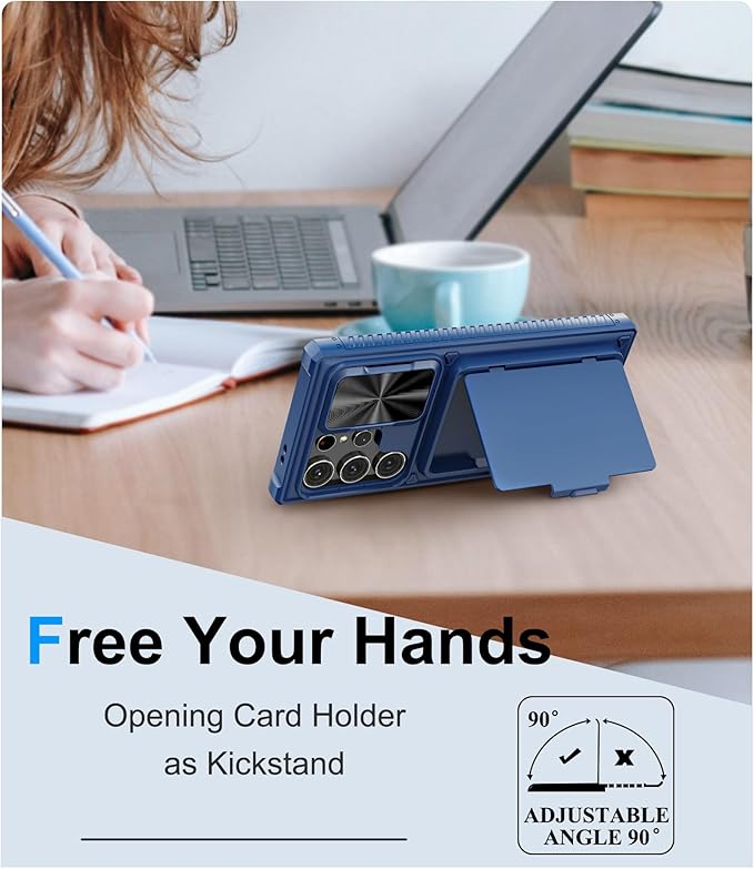 - ✅【Hidden Kickstand to Free Your Hands】The opened card holder cover can be used as a kickstand. Free your hands while watching the video. As the cardholder is opening, please keep them in other safe places if the cards or cash are in our Samsung Ultra S23 case.