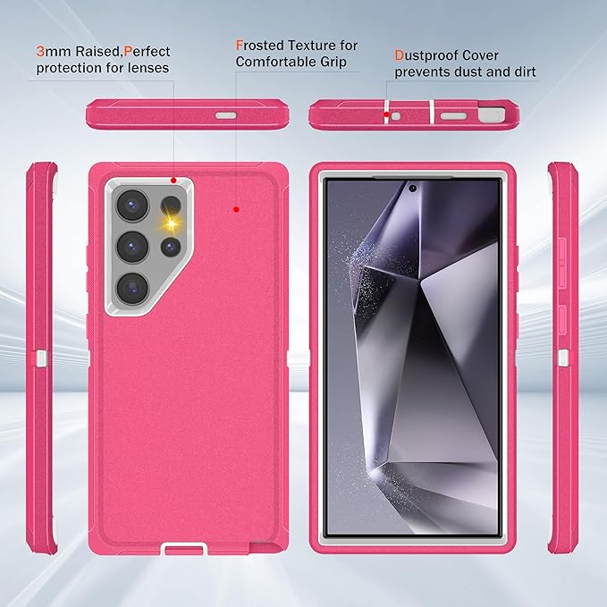 - [Multi-layer Protection] The Samsung S24 Ultra Case features a unique 3-in-1 removable design provides comprehensive 360°full-body rugged protection. Protection of your phone from serious drops, scratches, etc. It protects your phone from scratches, bumps and shocks in all directions. It's a good choice for sports and outdoor activities