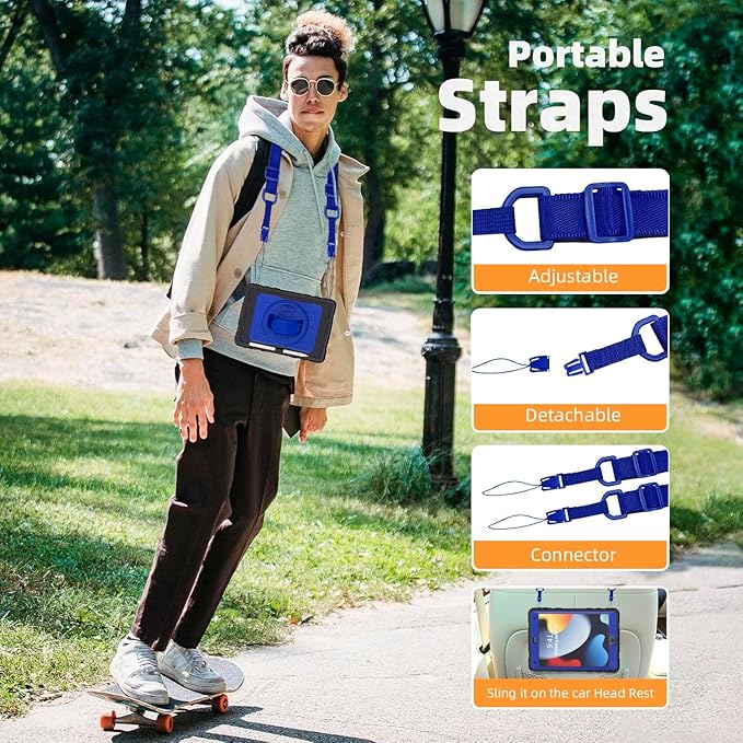 - 【360°Rotating Kickstand & Hand Strap】Rotatable kickstand easily support your iPad in multi-angle viewing. Moreover,the soft hand strap allows you to hold your iPad firmly and comfortably to prevent accidental drops.And your kids can use iPad easily and safely to study or watch movies.