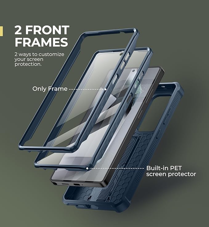 - Select from 2 front frames: Enjoy double-layered screen protection with our case's built-in PET screen protector or your own, complemented by raised edges for enhanced defense against scratches and spills, ensuring your screen stays pristine in any situation.