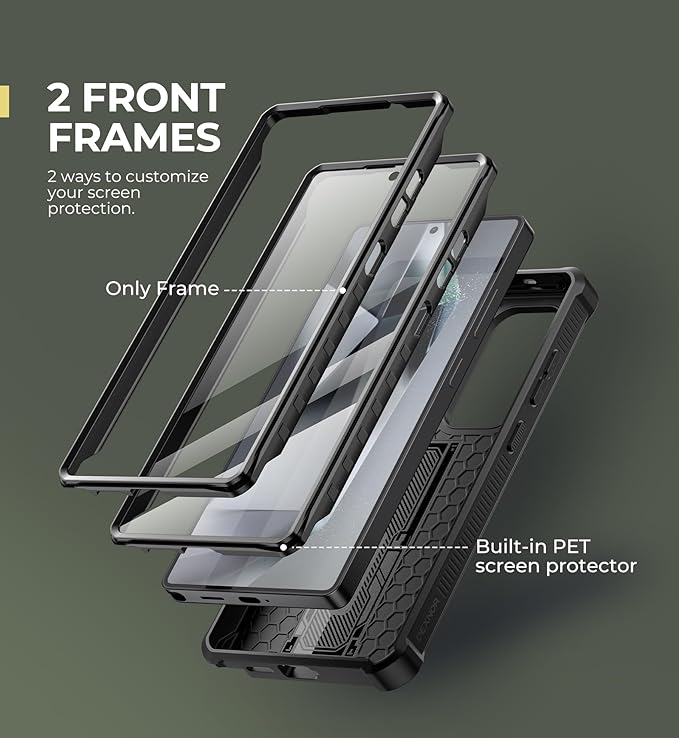 - Select from 2 front frames: Enjoy double-layered screen protection with our case's built-in PET screen protector or your own, complemented by raised edges for enhanced defense against scratches and spills, ensuring your screen stays pristine in any situation.