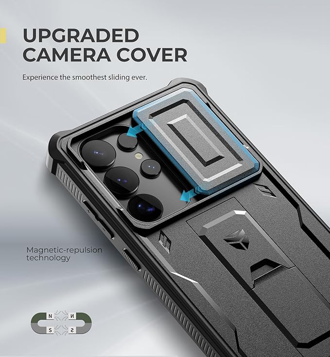 Dexnor for Samsung Galaxy S25 Ultra Case with Built-in Slide Camera Cover & Screen Protector & Kickstand, Heavy-Duty Shockproof Rugged Case Full-Body Bumper Cover for Galaxy S25 Ultra(2025),Black