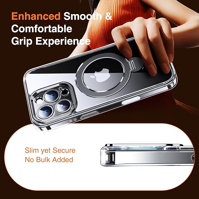 - [Did you Know?The 360°Stand Offers Finger Ring Grip & Hook Security]: Yes, you'd be surprised to learn the stand on the Magnetic iPhone 16 Pro Cover is not just for propping up your phone-It doubles as a handy finger ring holder, securely locked your iPhone in your palm. Or imagine your hands are full and nowhere to hold your phone. This ring allows you just one-finger hooking. Whether you're multitasking or on the move, the 360°Stand Ring offers you a firmer, easier, more stable grip.