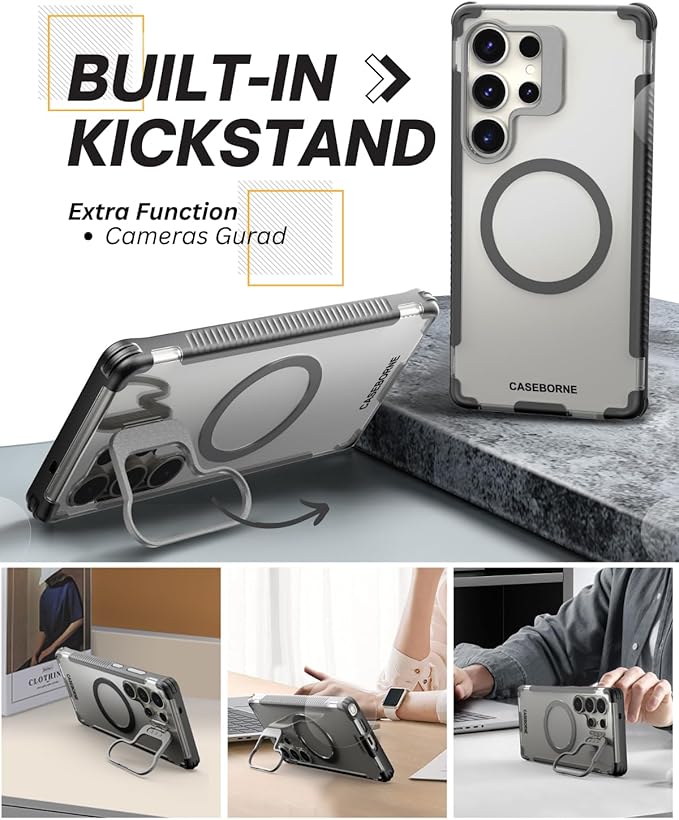 CaseBorne Compatible with Galaxy S25 Ultra Case - [Military Grade 12 Feet Drop Protection] [Compatible with Qi2 ][ Hybrid Magnetic Cover] with Kickstand