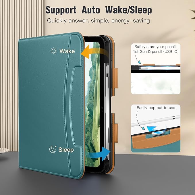- Pencil Holder: The iPad 11 inch/10.9 inch case 2025/2022 comes with a built-in pencil holder. When you are not using the Pencil 1st Generation, you can store it in the holder to prevent it from being lost or damaged while walking or outdoors (Note: Pencil Not included)
