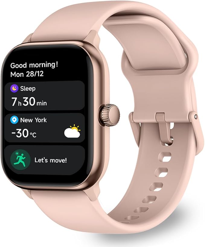 OCTANDRA Pulse 2 VeryFit Smart Watches for Men Women, Alexa Built-in 1.85" AMOLED Screen IP68 Fitness Tracker Watch, Body Energy/Heart Rate/Oxygen Saturation/Stress/Step/Sleep Monitor (GTX10) (Pink)