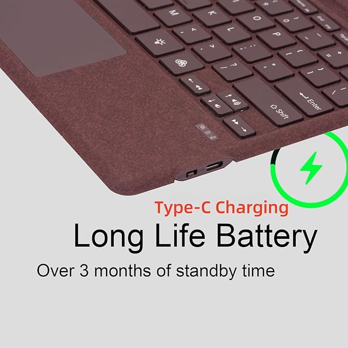 - Improving typing experience: The keyboard layout is simple and compact, with 7 color backlight and three adjustable brightness to enhance your typing experience. The slim design of the keyboard makes it easy to carry with you wherever you go.