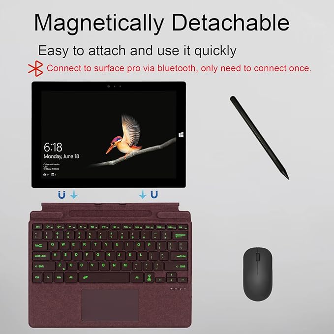 - Bluetooch Type Cover: Connect via Bluetooth, pair the keyboard once, and it will reconnect to the Surface automatically once you open it. ❌ NOT connect via magnetic contact.