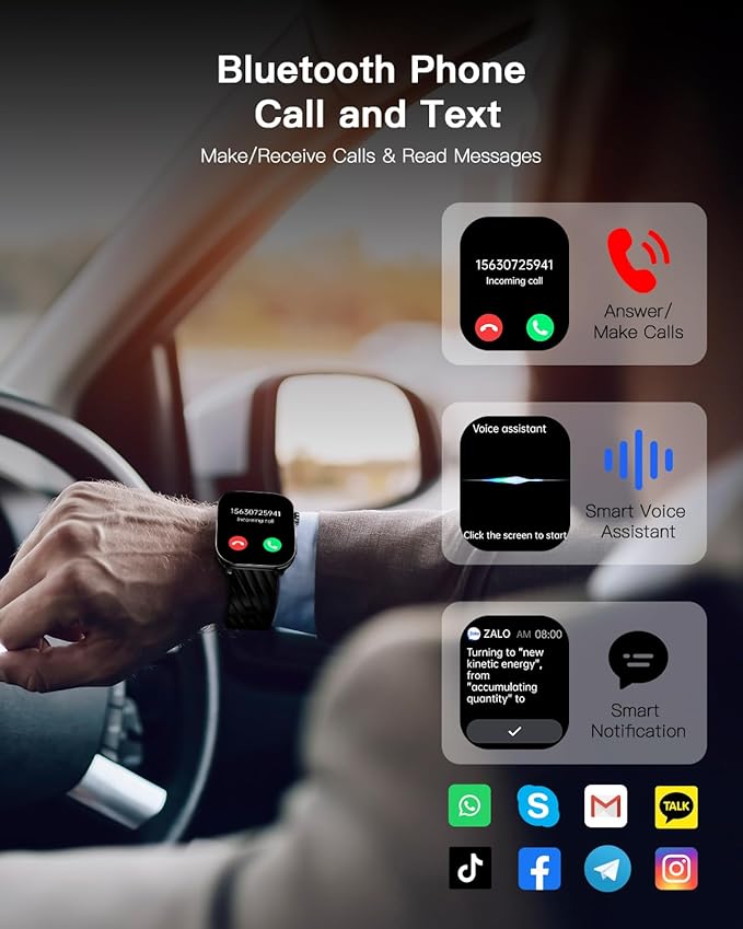 - Bluetooth Call and Message Reminders: This smart watch for men equipped with a built-in microphone and high-definition speakers for smooth dialing and answering calls, and you can also add frequently used contacts. The smartwatches also provides notifications of social media messages through vibrating alerts. You will not miss important messages and calls no matter when and where.