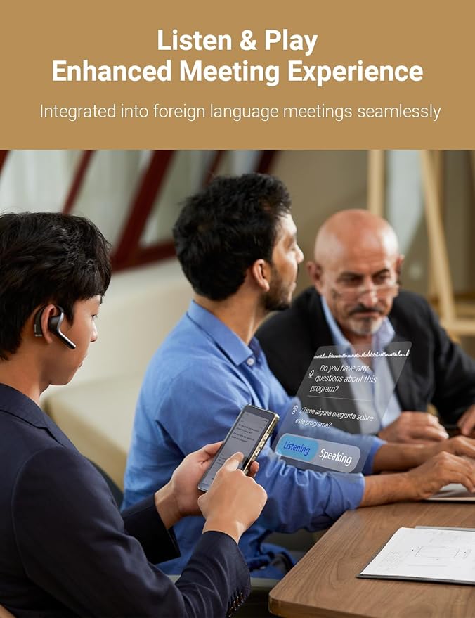 - Dual Meeting Modes for Any Scenario: Group Discussions: Host multilingual meetings effortlessly with Listen & Play Mode – speak while others listen to translated speech through their devices, perfect for round-table debates or presentations. AI automatically segments long speeches and generates summaries. 1-on-1 Negotiations: Switch to Simul Mode for real-time bidirectional translation. Both parties speak freely with near-zero latency, mimicking natural dialogue. Ideal for client pitches or confidential talks where interruptions matter